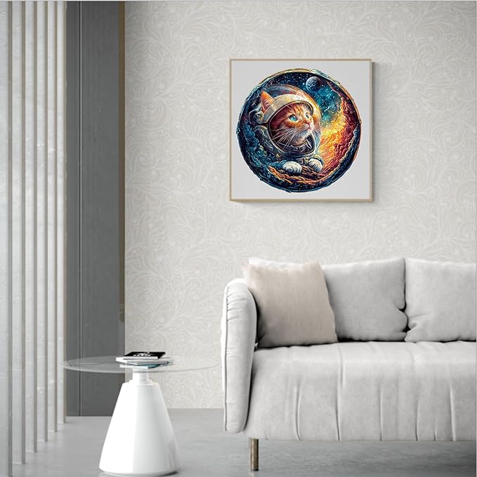 KAAYEE Wooden Puzzles for Adults, 3D Space Cat 200 Piece Unique Animal Shape Puzzle, Cat Wood Puzzle for Adults, Creative Gifts for Friends/Family, Home Decor(11.4 * 11.3in)