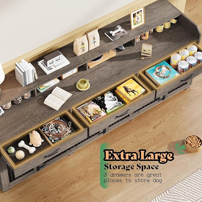- BUILT-IN STORAGE DRAWERS –Features 1 desktop,2-tier shelf and 3 spacious drawers to store leashes, toys, or grooming tools. Keep your home neat and organized while ensuring all pet care items are always within easy reach